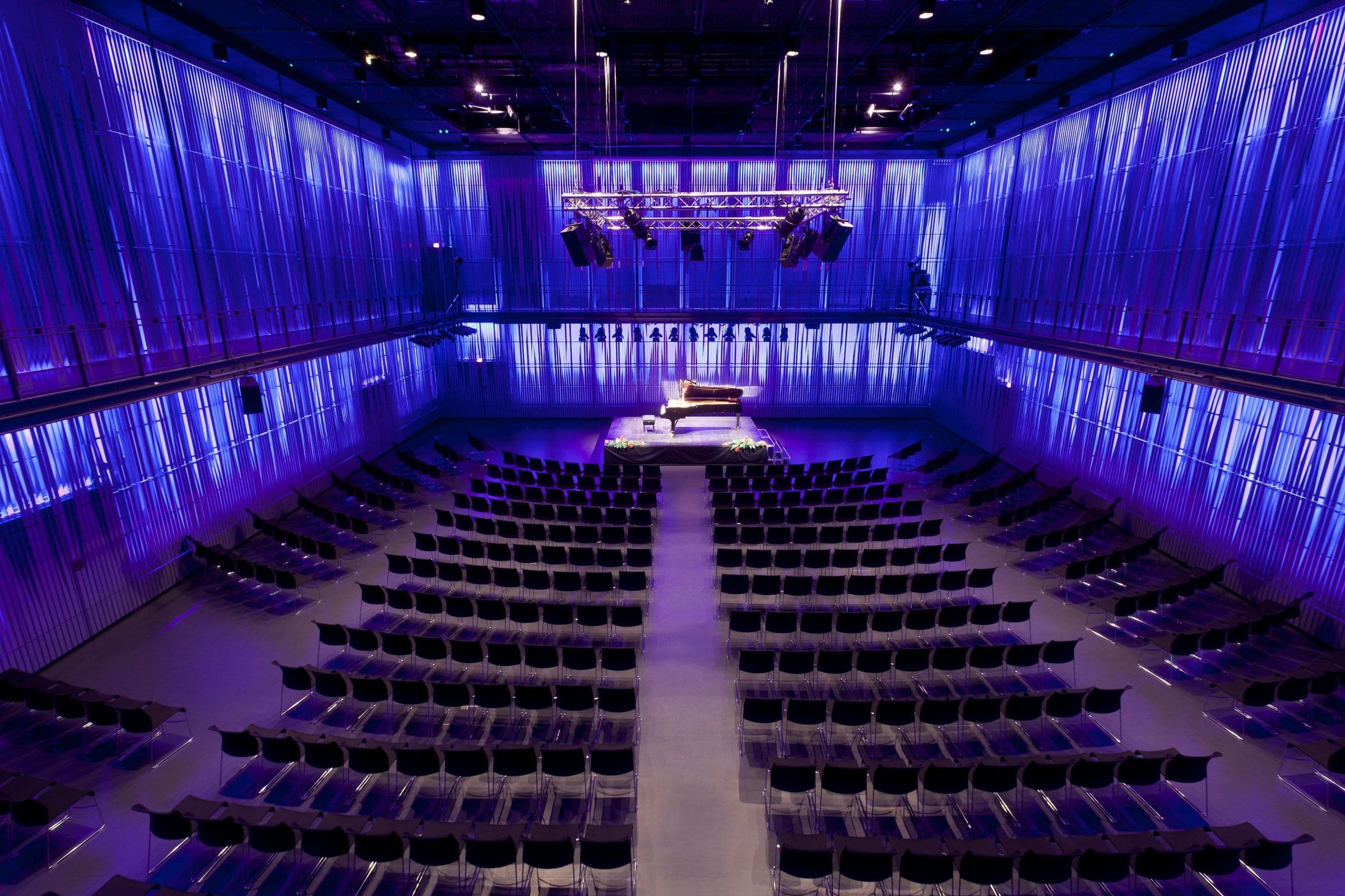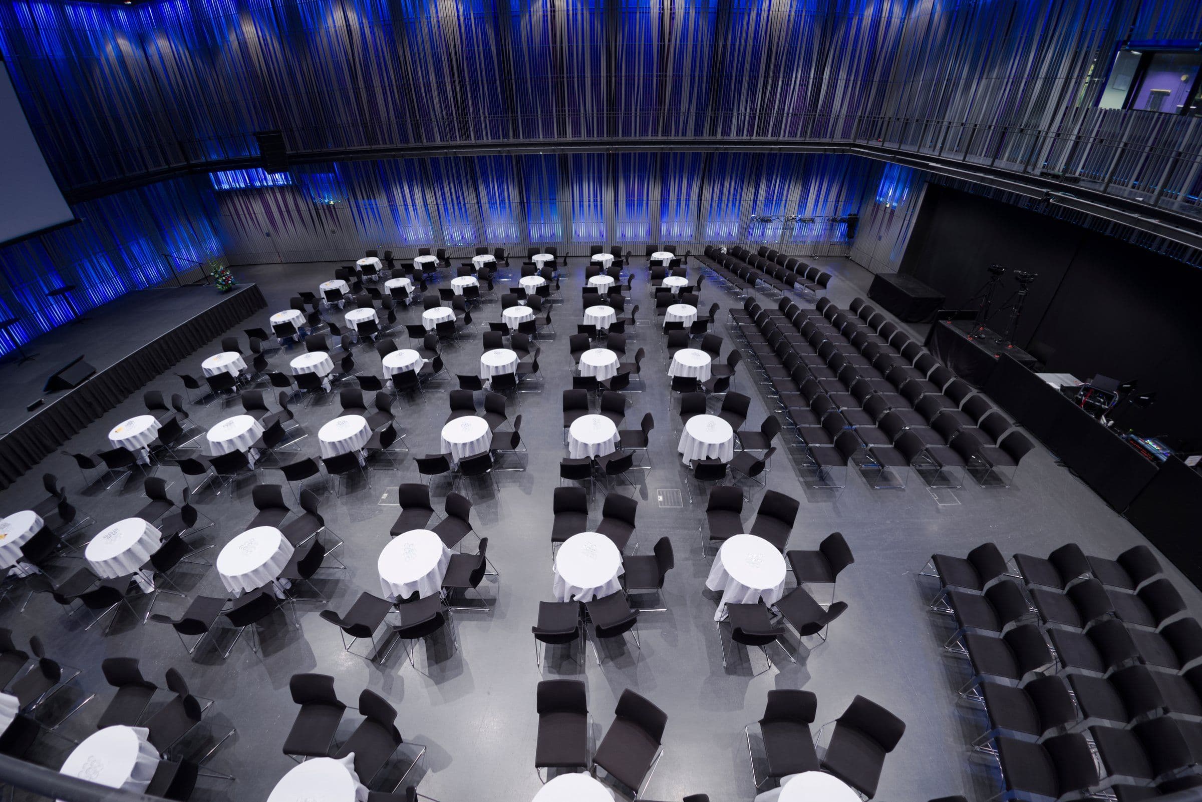 Sviðið er færanlegt sem gefur margskonar möguleika og hægt að raða sætum og borðum að vild. Svalir í salnum ná allan hringinn og geta verið nýttar í tengslum við viðburði.